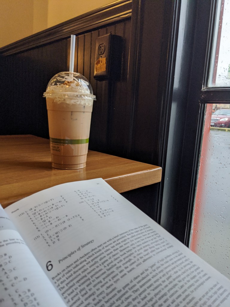 Things in the tower district were slower than normal. I, knowing that stores may start closing/closing seating soon, went to the Revue. I had my usual large iced mocha, sat down with my Logic book, and watched the rain hit the windows.