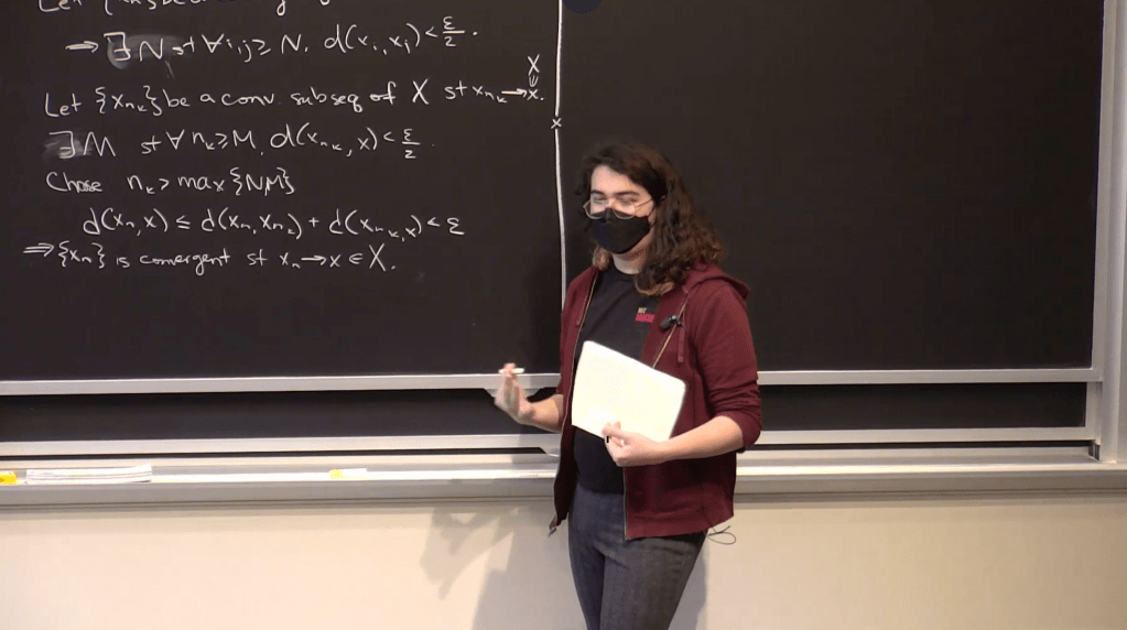 Then, I had to wait. Specifically, I had to wait for an education committee to sign off on the class being offered that IAP. This part took a few nerve-wracking months. Then, late in November, I got an email from Larry saying “P.S. Paige, your class is officially approved!” The class was numbered 18.S097: Intro to Metric Spaces. Then, I had to prepare.